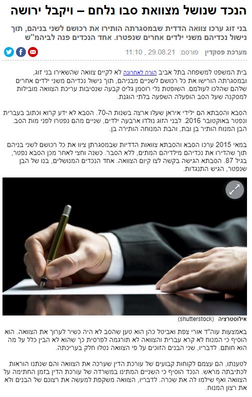 הנכד שנושל מצוואת סבו נלחם – ויקבל ירושה