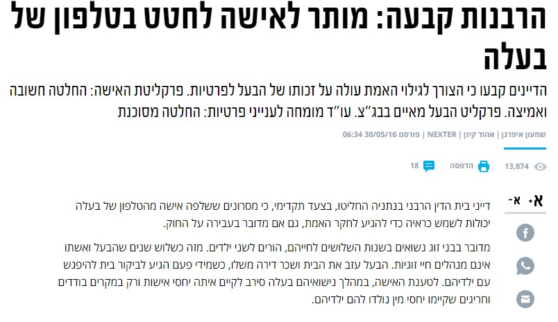 הרבנות קבעה: מותר לאישה לחטט בטלפון של בעלה