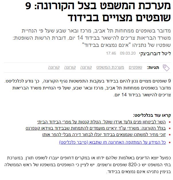מערכת המשפט בצל הקורונה: 9 שופטים מצויים בבידוד